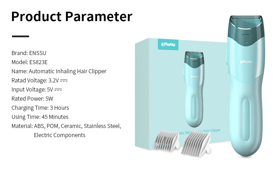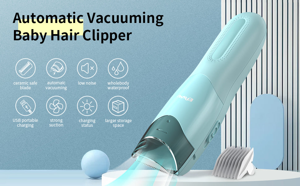 ENSSU Auto-Vacuum Baby Hair Clipper – Safe Ceramic Blade, IPX7 Waterproof