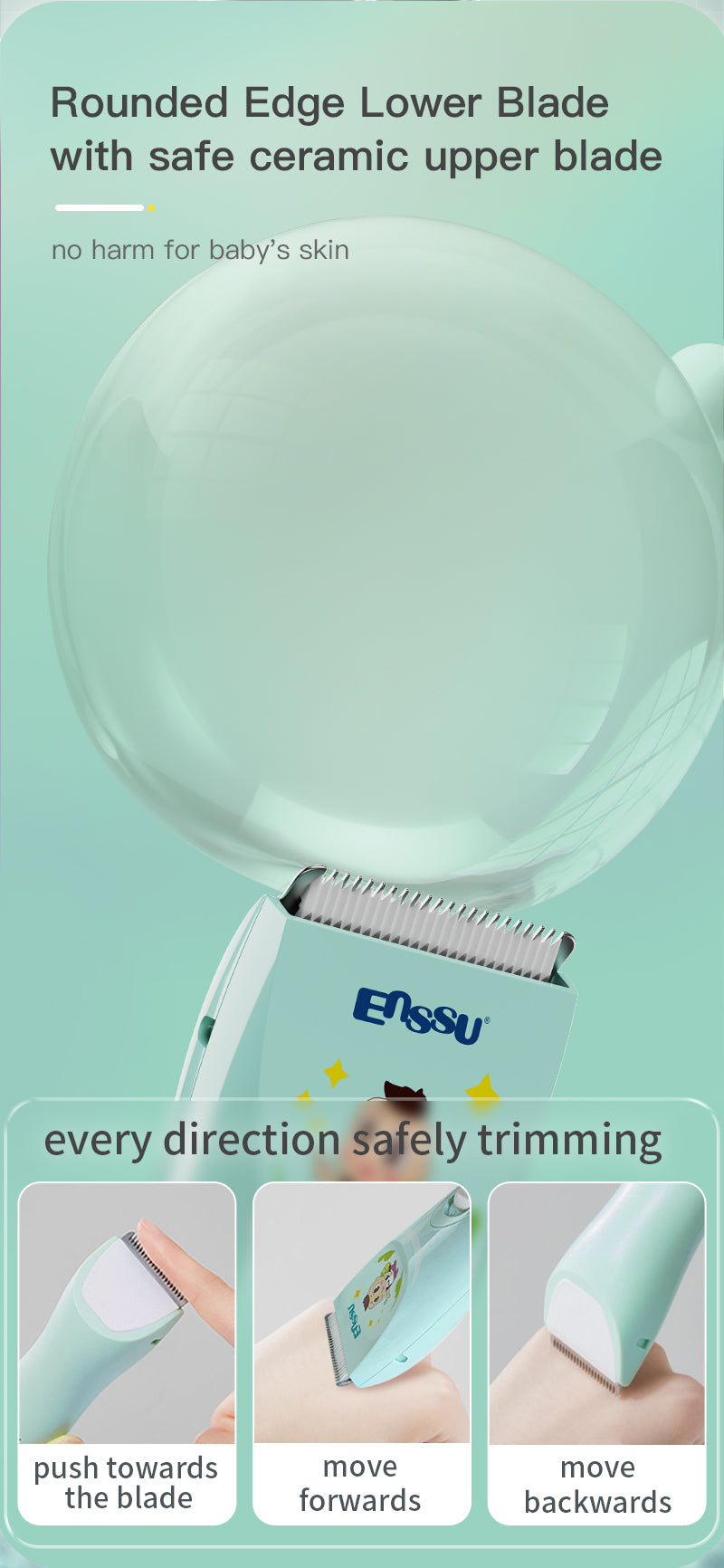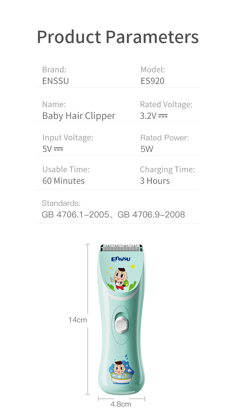 ENSSU Baby Hair Clipper – Dense Ceramic Blade, Low Noise, IPX7 Waterproof