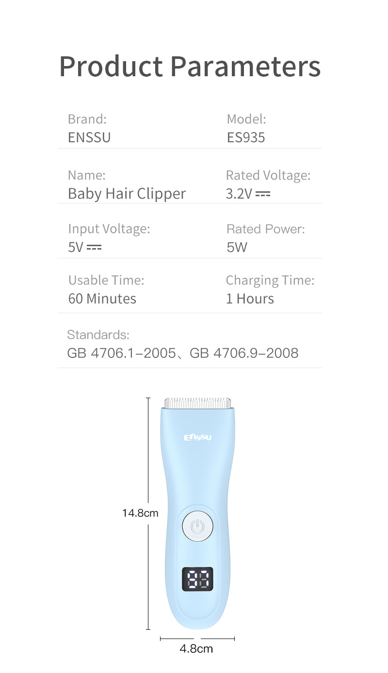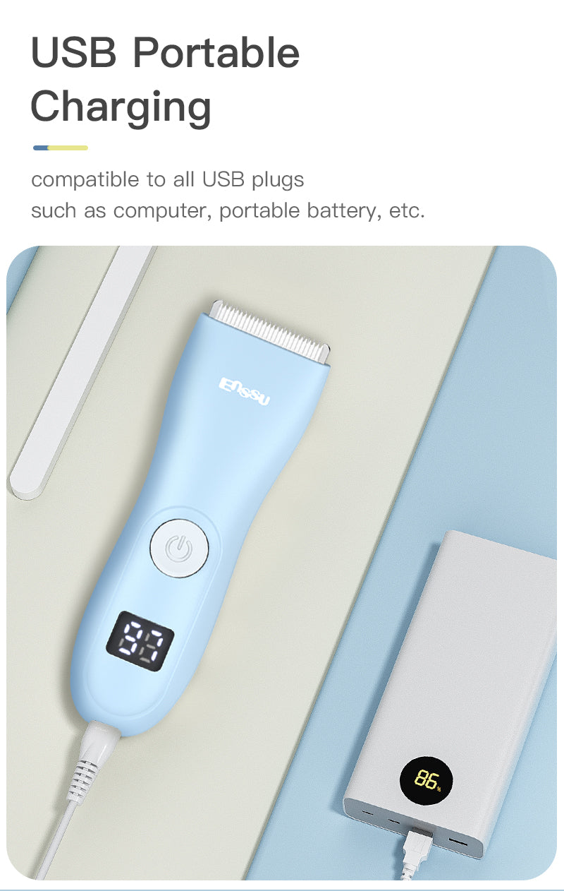 ENSSU Baby Hair Clipper – Safe Ceramic Blade, Low Noise, LCD Display, IPX7 Waterproof
