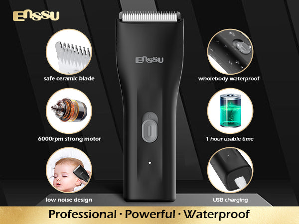 ENSSU Mini Electric Hair Clipper – IPX7 Waterproof with Ceramic Safe Blade